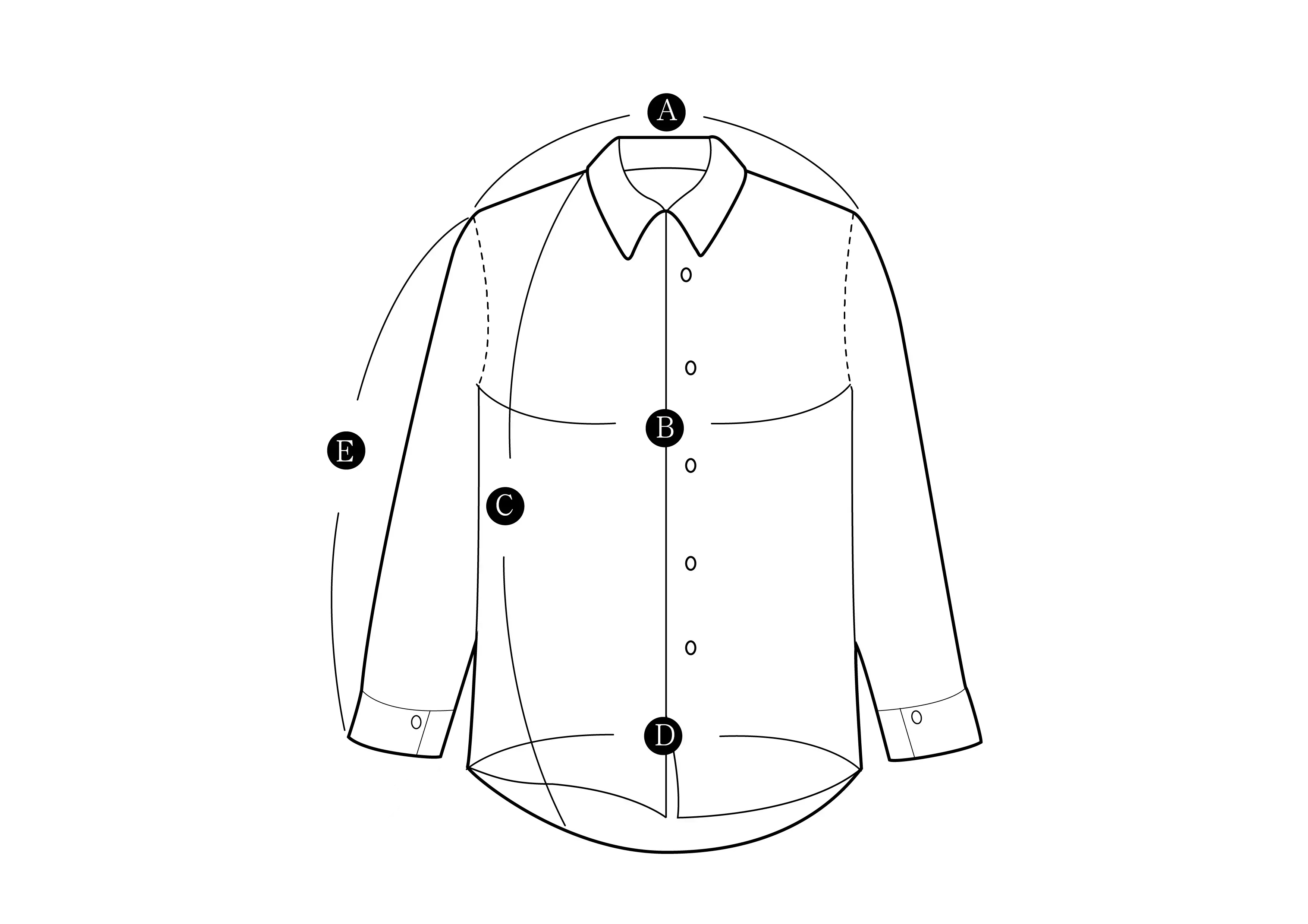 XL: C.肩寬50|B.胸寬54|C.衣長73|E.袖長63|
